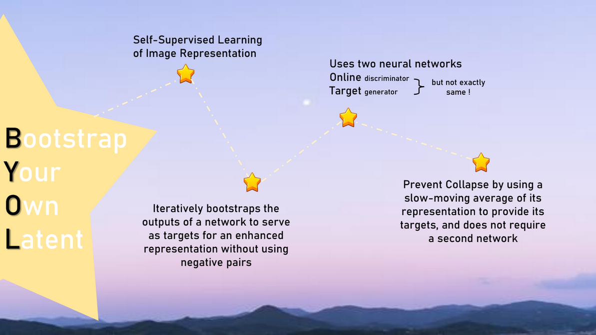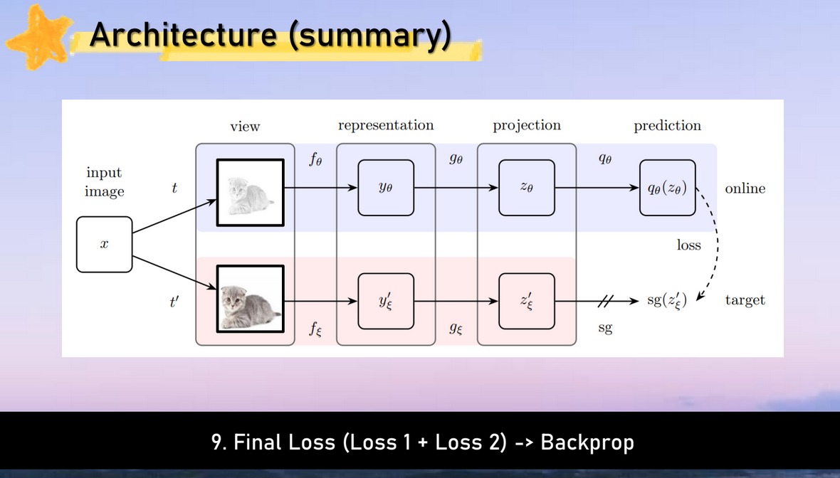 2. BYOL, Bootstrap your own latent: A new approach to self-supervised Learning