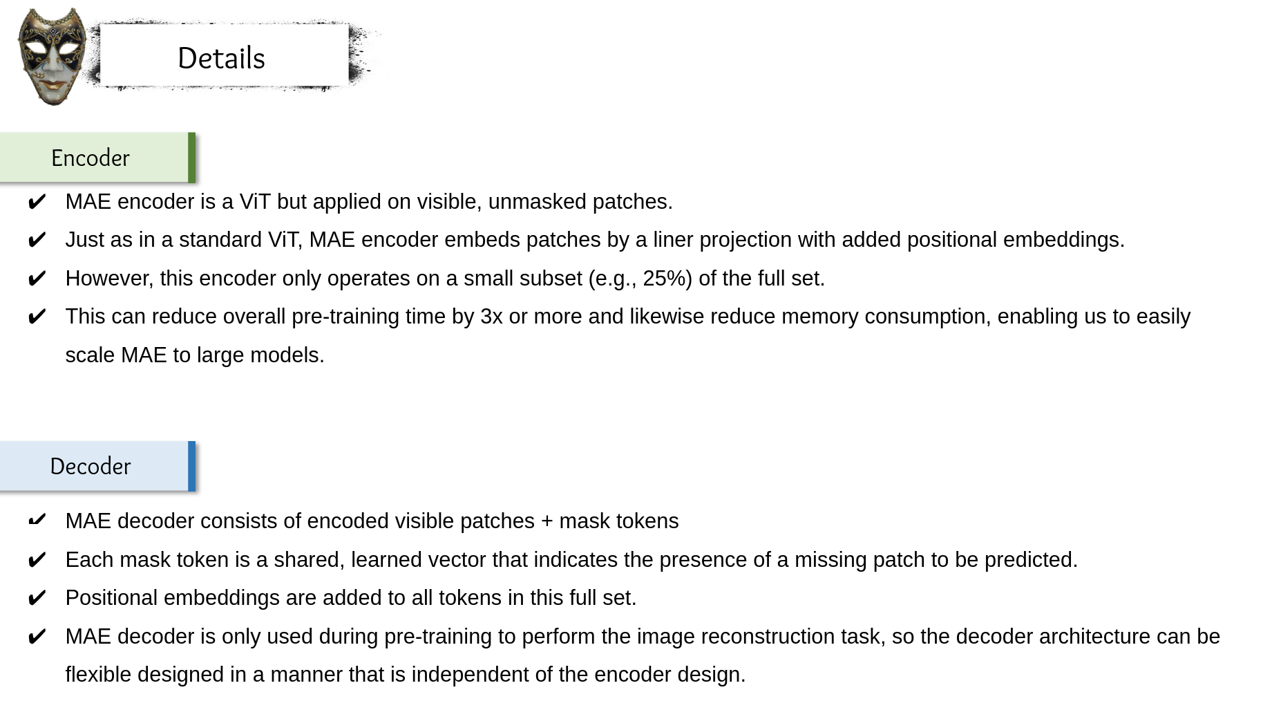 - 그 결과, label이 없더라도 이미지의 유의미한 feature를 뽑아내는 pre-train된 인코더를 얻을 수 있게 된다.